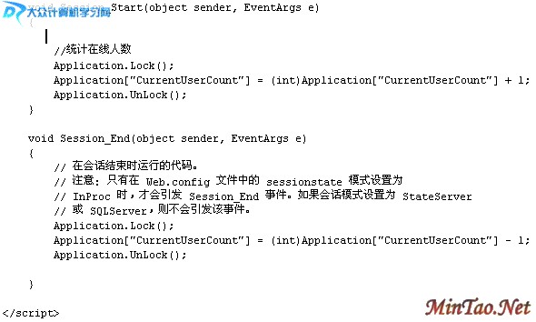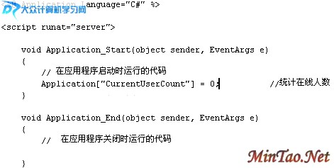 打开Global.asax文件,在相应的位置输入如下示例的代码:
