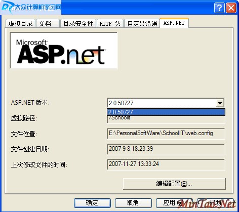 上图俺的只安装了NET2.0,如果阁下安装了NET1.0,那么会存在两个选项,按上面的方法设置就成功了!