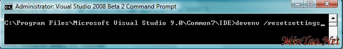 2) 假如你曾经在你的机器上安装过Orcas或VS 2008的早期版本(Beta1 或某个CTP 版本)的话,你需要在安装Beta2后重新设定你的VS 2008设置。如果你不这么做的话,有些设置会非常奇怪(一些窗口在出现在奇怪的地方),你也有可能看到一些IDE性能问题。你可以在命令行上对VS 2008的IDE版本键入“DevEnv /resetsettings”来重新设定你的配置: