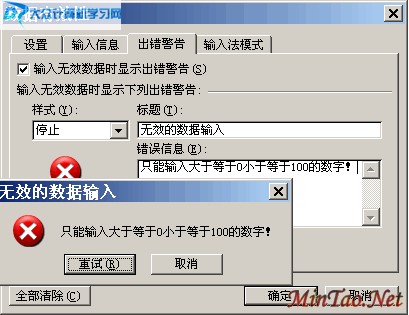 其他输入限制,操作方法和上面的一样,自己操作一下就明白了!不再阐述了!