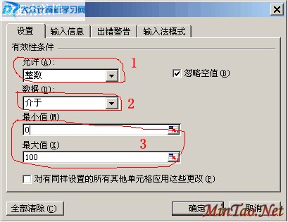 选择“设置”选项卡,之后按图中的说明根据需要设置相关的输入限制吧!