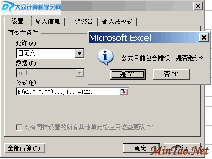 点"确定",这时会出现一个"公式目前包含错误,是否继续?"的对话框,点"是"就可以了。