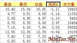 例如现在有一张股市的表格,我们希望找到涨跌幅度最大的几种股票,以找到近日走红和看跌的单股,现在所有的记录从上到下是按照股票的序号排列的,我们让它照股票的涨跌幅度来排列:单击“涨跌%”单元格,单击工具栏中的“降序”按钮,表中的数据就按照涨跌的幅度从大到小排列了,这样我们找起股票名称来就方便多了。