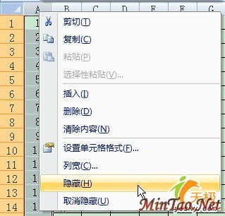 最后要做的,就是选中A列数据,点击右键,在弹出的快捷菜单中选择“隐藏”命令,将该辅助列隐藏起来,如图4所示。