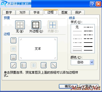在这里可以设置单元格的四个边框,也可以设置上下左右或者对角线的包括,边框可以使用多种线条,边框颜色也可以自行选择!