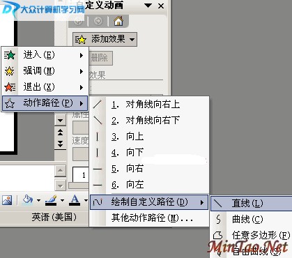 本例我们要实现的效果是沿直线运动的动画,所以就选择直线,当然了,沿路径动画的效果有很多种类,阁下不妨自行选择符合自己意愿的一种效果才不愧为上上之策;