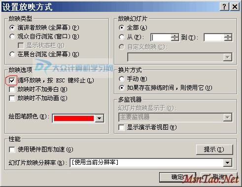 之后,会弹出“设置放映方式”的对话框,如下图: