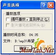 而第3步的右键单击声音图标“小喇叭”,选择“自定义动画”,打开的“自定义动画”窗口也有所变化,如图5:这时我们可以左键双击“自定义动画”窗口中的“一剪梅.wma”或右键单击“一剪梅.wma”,再选择“效果选项”,会出现如下图的播放声音窗口(如图6)。单击“在哪张幻灯片后”项,然后在方框内填入需要停止播放的幻灯片的序号,最后单击“确定”就完成设置了。
