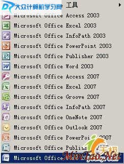 安装完成后,我们可以在程序菜单中看到office2003和office2007。(图3)