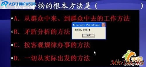 关闭窗口,然后运行一下幻灯片,点击选项B试试,结果不错吧?如图4所示。