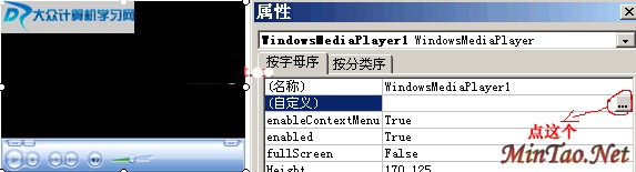 选择上图中的播放器,点右键,执行“属性”,弹出如上图右边的“属性”对话框,找到“自定义”,点击其右方的带有“...”的按钮,弹出如下图的对话框!