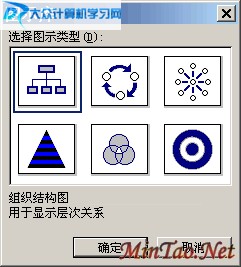 执行操作:“插入”→“图示”,弹出如下对话框,选择第一个类型,就是组织结构图!