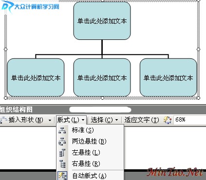 在上图中,插入了图示,默认显示一个工具栏,点击“版式”按钮,即可修改其版式属性!