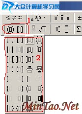 首先在页面中定位好插入条的位置,然后打开公式编辑器的工具条,如下图: