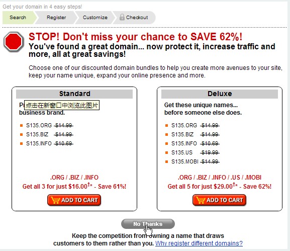 因此,域名转移到Network Solutions,相对来说是最安全的。但是,它的价格较贵,例如.com域名差不多要30美元/年,因此适合企业。当然,如果你有钱,也不妨选择Network Solutions。