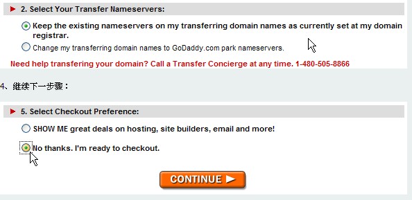 3、选择你的域名DNS服务器:选择保持原有DNS服务器不变,等域名转移成功后,再更改DNS服务器,这样在转移注册商的过程中,域名解析是不会有任何中断的。