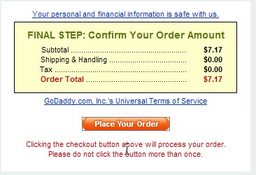 5、这一步可以输入Godaddy优惠码。即使不输入优惠码,域名转入默认已经有优惠, .com域名转入续费一年的价格为6.99美元,再加上0.18美元的税,共计7.17美元,折合人民币不到50元。