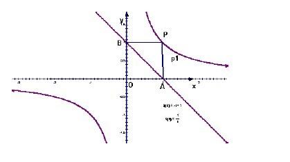 ①Y=-x+1 交X,Y 轴于A,B 可以得出,坐标A(1,0),B(0,1) 那么点P(1,1)代入双曲线y=k/x,解出k=1 反比例函数的解析式为y=1/x ②AF 与BE 的积不变是正确的 设坐标动点P(x,1/x)............ x>0 依据题意知道点E(x,-x+1) 点F(1-1/x,1/x) lAFl=1/x×√2............x>0 lBEl=x×√2............x>0 明显lAFl×lBEl=√2 所以结论AF 与BE 的积不变是正确的。