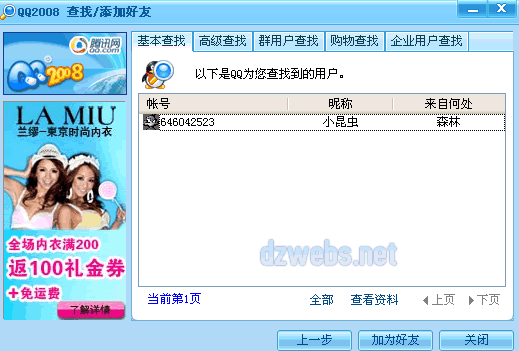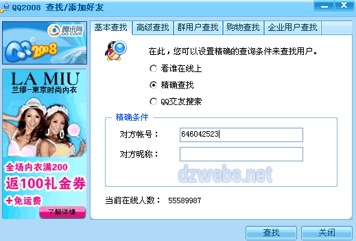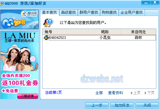 首先,通过QQ查找好友的功能,如下图!