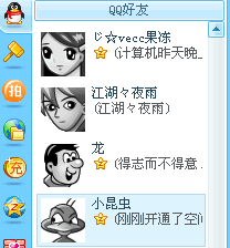 比如说,我们想看昵称为“小昆虫”的好友,现在,我们都看到了,他的图标是灰暗的,一般情况下,都认为,他不在线;