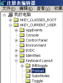 ②查找并展开“HKEY_CURRENT_USER\ Keyboard Layout \ preload”项,如下图!