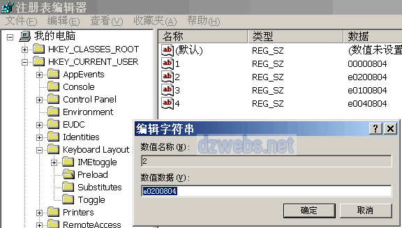 您会发现这些键值很有规律,都是由1、2、3、4这些数字组成的(有的朋友的电脑上可能比图片上的键值多或者少),其实这里面每个键值都代表一种输入法,而这个1、2、3、4的数字则标明了每个输入法出现的顺序,它的规则就是编号为1的输入法在按动 左Ctrl + Shift键 时第一个出现,而它又正好和系统显示的输入法顺序一致。