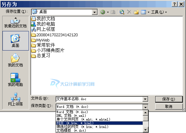 在输入文件的名称的时候,我们可以不输入文件的扩展名,仅输入文件的基本名就可以了。此外,选择好文件的类型即可,如下图!