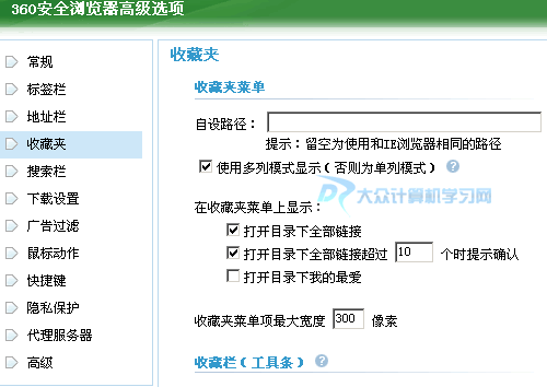 根据不同的选项,进行不同的设置,例如“收藏夹”。
