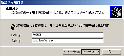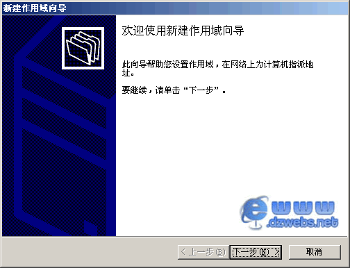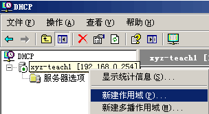 上图中,我们使用右键点击本机的计算机名称,如本例的“XYZ-TEACH1”,在弹出的快捷菜单中选择“新建作用域”,弹出如下图的对话框!