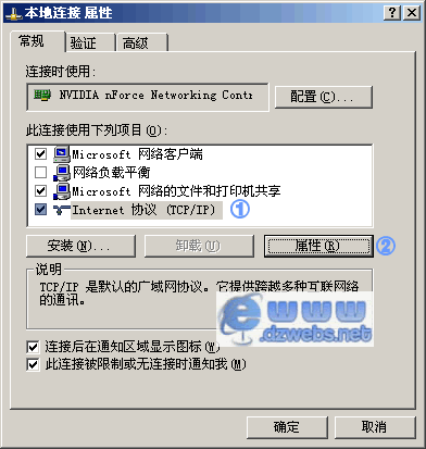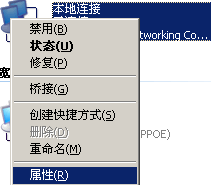 打开“网上邻居”,然后右键点击“本地连接”,在菜单中选择“属性”,如上图,弹出如下图的对话框!