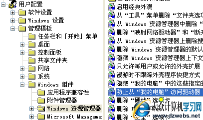 在组策略窗口中,按照这样的顺序打开:“用户配置”→“管理模板”→“Windows组件”→“Windows资源管理器”,如下图!