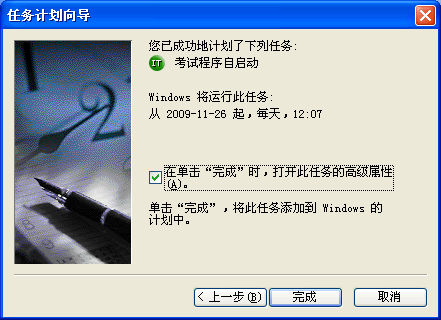 看上图,以上我们所设置的每天自动定时运行的程序,就添加好了,就这样,“考试程序自启动”这个程序,每天都会定时运行了。