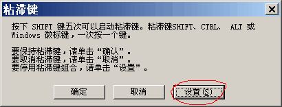 当我们连续五次按下键盘上的“Shift”时,就会弹出如下图的“沾滞键”对话框!