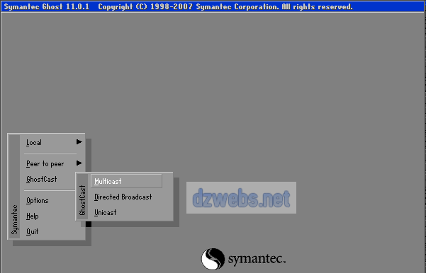 无论是创建映像还是恢复映像文件,都一致选择菜单操作:“GhostCast”→“Multicast”,如上图;