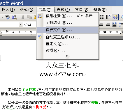 执行如下图的菜单操作:“工具”→“保护文档”!
