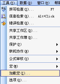 然后,返回到Excel界面,执行如下图的菜单操作:“工具”→“加载宏”。
