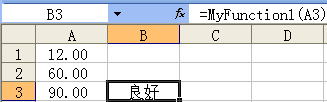 看吧,上图,直接输入=MyFunction1(A3)公式,结果就出来了。