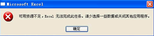 当您在处理电子表格时,如果打印的Excel文件,其文件大小比较大,比如超过10M或更大时,就会出现“可用资源不足,Excel无法完成此任务。请少选择一些数据或关闭其它应用程序”的提示,如下图!