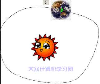 之后,在幻灯片中,使用鼠标点击的办法,画出地球围绕太阳转的大概轨迹,如下图!
