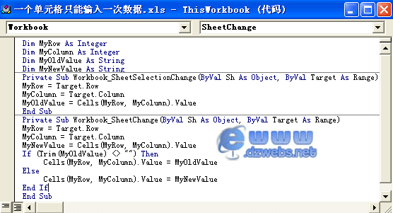 Dim MyRow As Integer Dim MyColumn As Integer Dim MyOldValue As String Dim MyNewValue As String 这三行代码写在通用处。