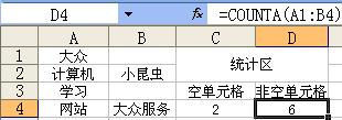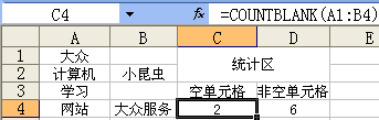 上述的A1:B4,指的是要统计的单元格区域,得到的空单元格个数是2;