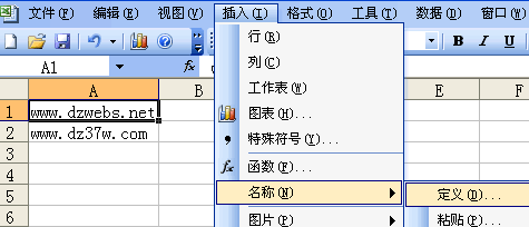 如下图!我们先在A1和A2单元格中,分别输入“www.dzwebs.net”和“www.dz37w.com”;
