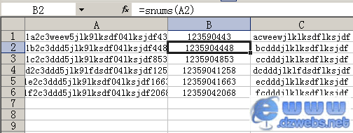 Function snums(cel) '提取字符串中的数字 Application.Volatile For i = 1 To Len(cel) st = Mid(cel, i, 1) If IsNumeric(st) Then strNum = strNum & st End If Next snums = strNum End Function