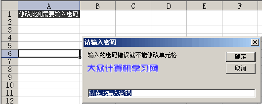 如果您想修改A列的单元格内容,使用鼠标点击选择该列的任何一个单元格,那么,就会弹出需要输入密码进行验证输入框,如下图!