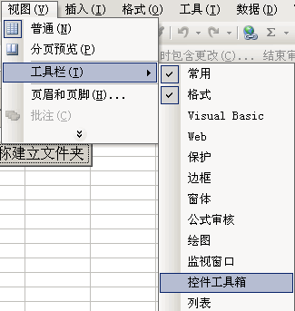 首先,执行菜单操作“视图”→“工具栏”→“控件工具箱”,如下图!