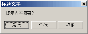 affrim = MsgBox("提示内容简要?", vbYesNoCancel+vbQuestion+vbDefaultButton2, "标题文字")