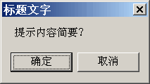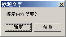 dim dffrim affrim = MsgBox("提示内容简要?", vbOKCancel, "标题文字") '显示确定,取消按钮 affrim = MsgBox("提示内容简要?", vbYesNoCancel, "标题文字") '显示是、否、取消按钮 affrim = MsgBox("提示内容简要?", vbYesNo, "标题文字") '显示是、否按钮 affrim = MsgBox("提示内容简要?", vbAbortRetryIgnore, "标题文字") '显示重试、终止、忽略按钮 affrim = MsgBox("提示内容简要?", vbRetryCancel, "标题文字") '显示重试、取消按钮 affrim = MsgBox("提示内容简要?", vbMsgBoxHelpButton, "标题文字") '显示确定、帮助按钮