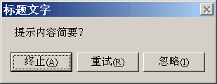 该对话框的特性是,显示终止、重试、忽略三个按钮,供用户使用;默认情况下,获得焦点的按钮是“终止”按钮;那么,我们如何才能实现,让对话框显示的时候,默认获得焦点的是第三个按钮“忽略”呢?
