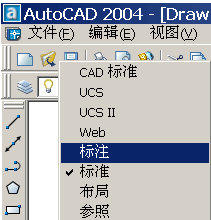首先,将鼠标指针移到任何一个工具栏上面,之后点击右键,会弹出菜单,然后,选择“标注”菜单项,即可立刻弹出标注工具栏,操作方法如下图!