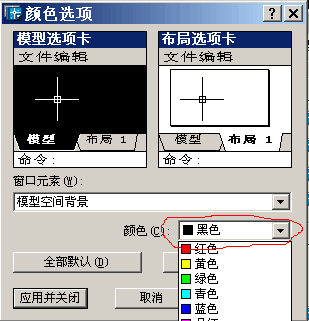 上图中,找到“颜色”右边的下拉组合框,然后,使用鼠标点击即可选择不同的颜色当作CAD作图的背景。